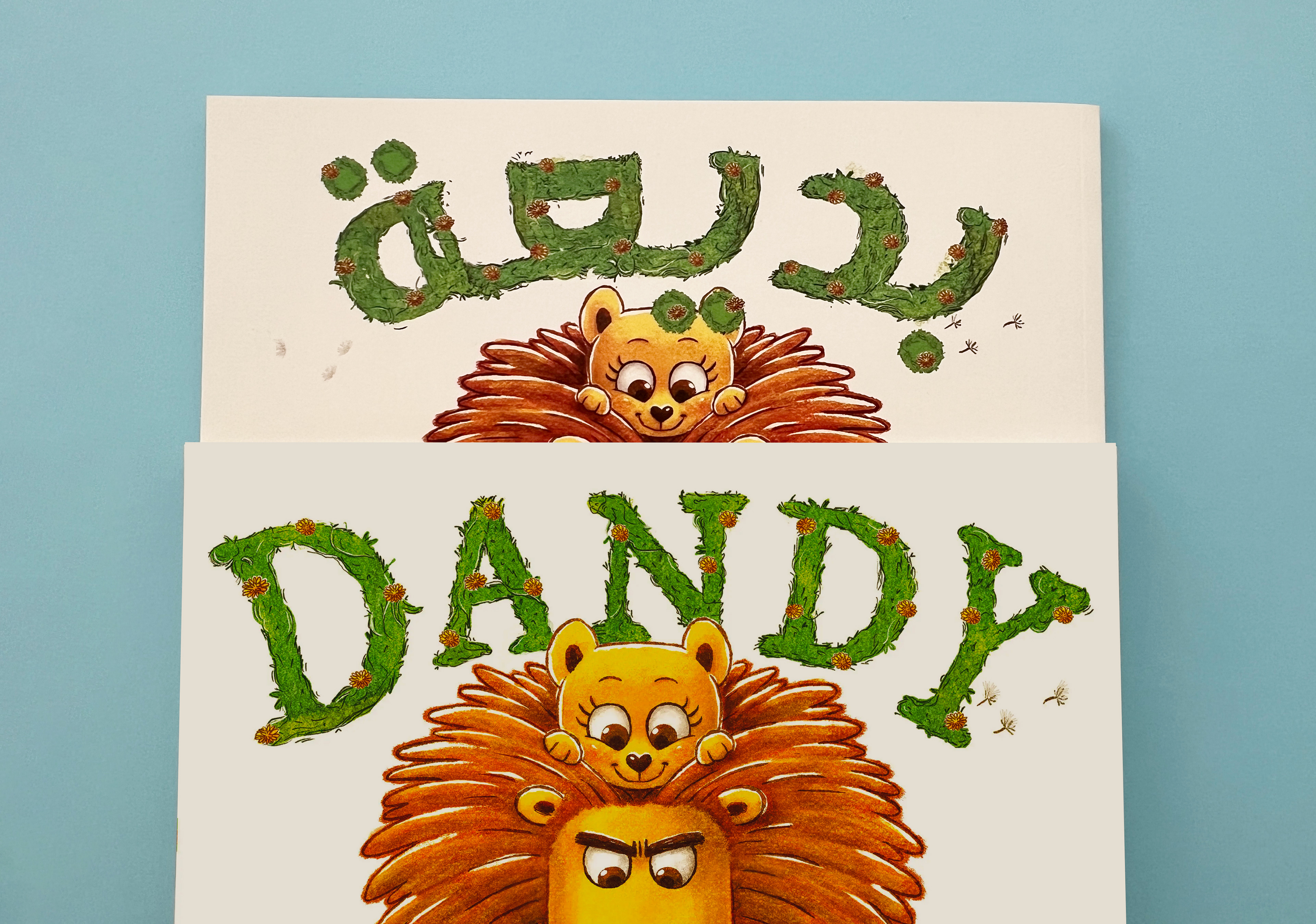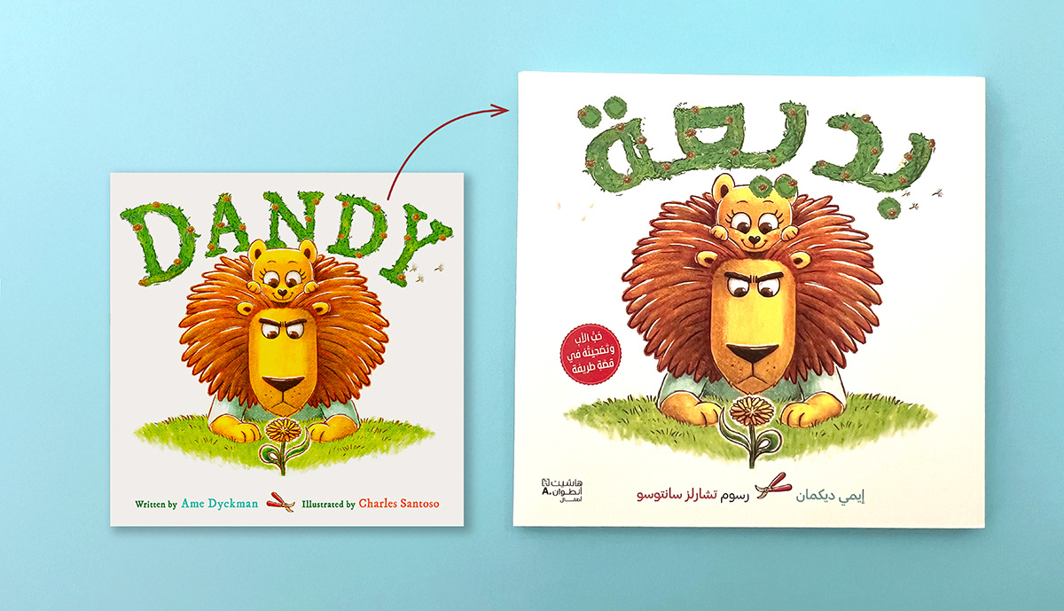 Adaptation of the illustrated title DANDY into Arabic by rebuilding the letterforms to match the same playful, textured style. The Arabic title was designed by reinterpreting the shapes, rhythm, and foliage details found in the English logotype. Focus was placed on maintaining the same character personality, weight, and visual balance across both versions. This ensured that the Arabic edition feels authentically connected to the original artwork.