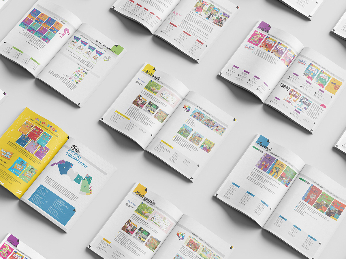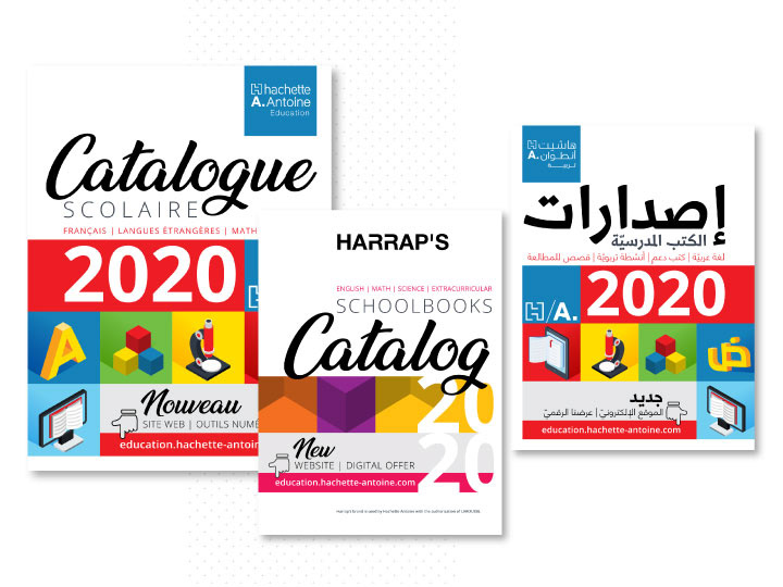 Complete design and art direction for Hachette Antoine’s trilingual 2020 schoolbooks catalogs — Arabic, French, and English editions. The project unified the publisher’s academic collections under one cohesive visual identity while maintaining distinct character for each language edition. I developed the overall creative concept, cover design, and interior page layouts, ensuring clear hierarchy, structured navigation, and brand coherence across all editions. Each version features a color-coded system, custom iconography, and grid-based composition tailored to the reading direction and typographic nuances of Arabic and Latin scripts. The catalogs highlight hundreds of educational titles, from preschool to secondary levels, and reflect the publisher’s transition toward digital learning tools through modern, accessible design. Deliverables: cover and layout design for Arabic, French, and English catalogs, trilingual visual system, icon set, and print-ready & digital versions.