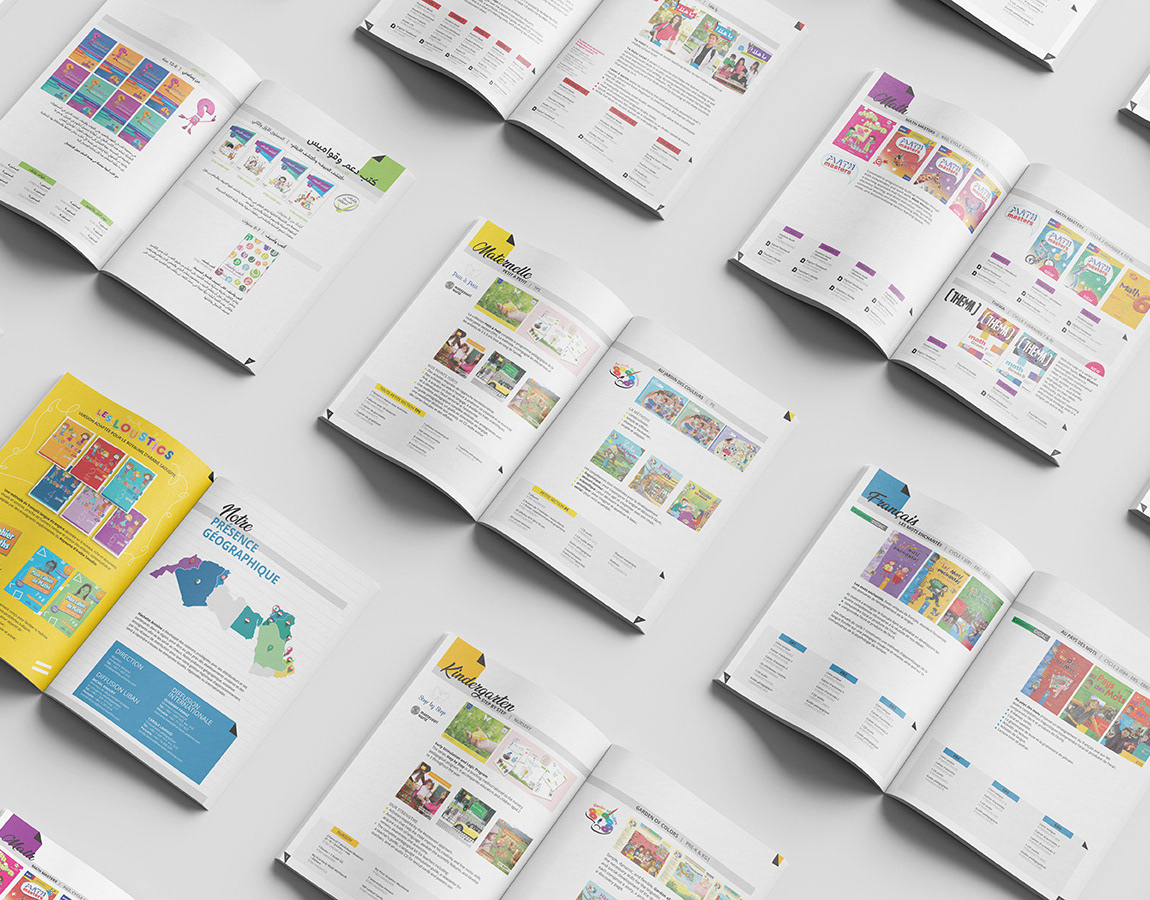 Bilingual catalog design for Hachette Antoine’s 2020 educational collections.