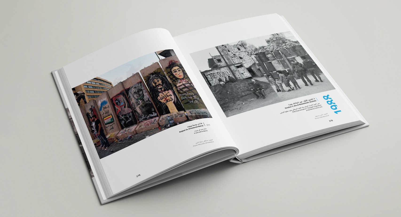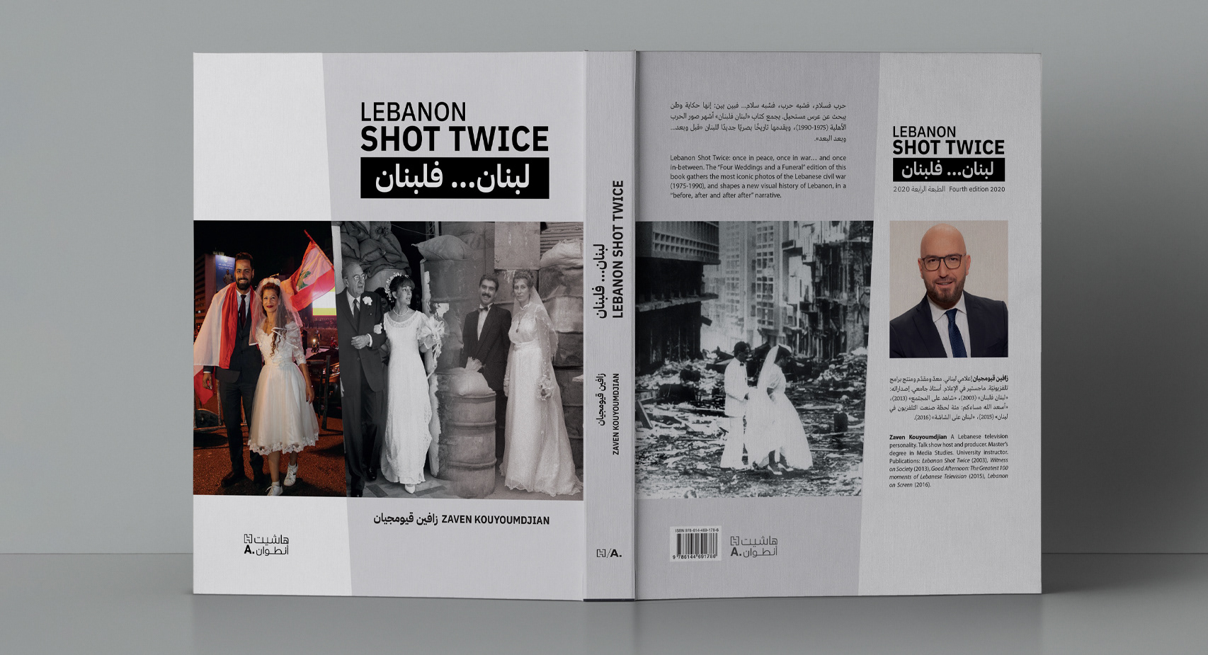Book design and layout for Lebanon Shot Twice by Zaven Kouyoumdjian, published by Hachette Antoine. This publication juxtaposes two generations of Lebanon — past and present — through a striking visual narrative that pairs archival and contemporary photography. The creative direction highlights the country’s contrasts and resilience, using clean typography, a structured grid, and bilingual harmony between Arabic and English. The cover merges two mirrored moments of joy and chaos, symbolizing Lebanon’s enduring duality. Deliverables included cover design, full interior layout, bilingual typographic system, and production-ready files for print. The design balances emotional storytelling with minimalist composition, allowing the photographs to speak with authenticity and power.
