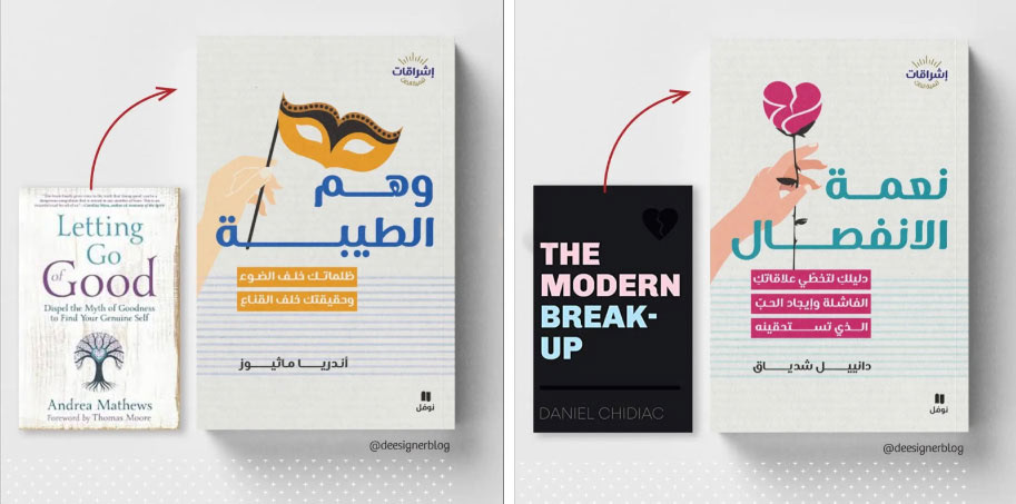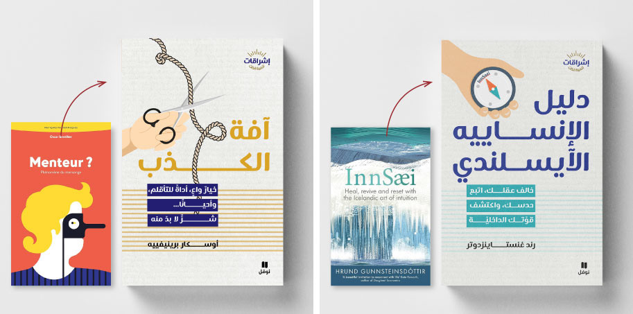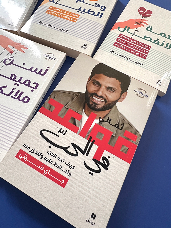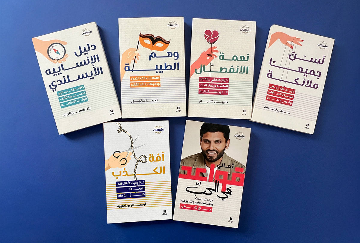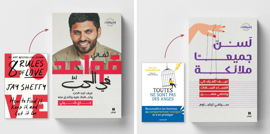 Book cover adaptation for the إشراقات series, a collection of translated self-help and psychology titles by international authors such as Jay Shetty. The goal was to maintain the visual identity and tone of the original editions while adapting typography, composition, and layout to fit Arabic script and right-to-left structure. The result is a series that feels familiar to global readers yet visually natural in the Arabic market.