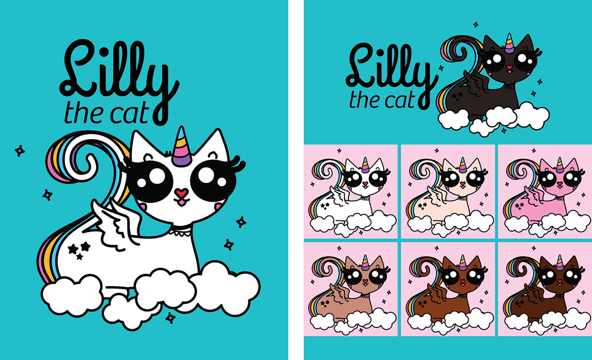 A playful character design exploration inspired by kawaii pop and unicorn fantasy aesthetics. I created a small universe around Lilly and Freddie, developing expressions, poses, and multiple color variations. The project reflects my lighter, joyful side — experimenting with bold outlines, pastel palettes, and charming personality traits. A reminder that design can be serious and fun.