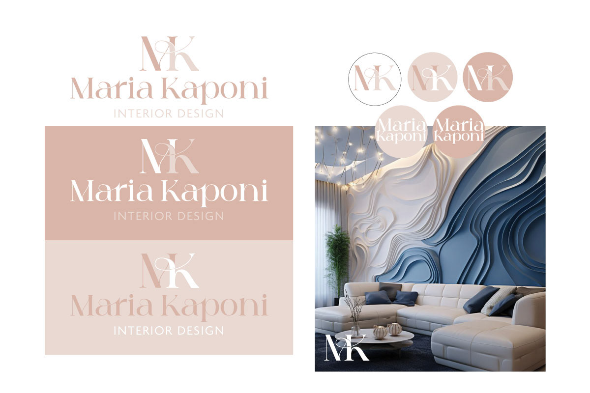 Brand identity for interior designer Maria Kaponi, reflecting her refined, soft, and considered approach to spatial design. The monogram and nude-toned palette communicate calm elegance, while the typography balances personality with simplicity. The result feels warm, feminine, and effortlessly refined — just like her work. Deliverables: Logo · Monogram · Color palette · Business cards