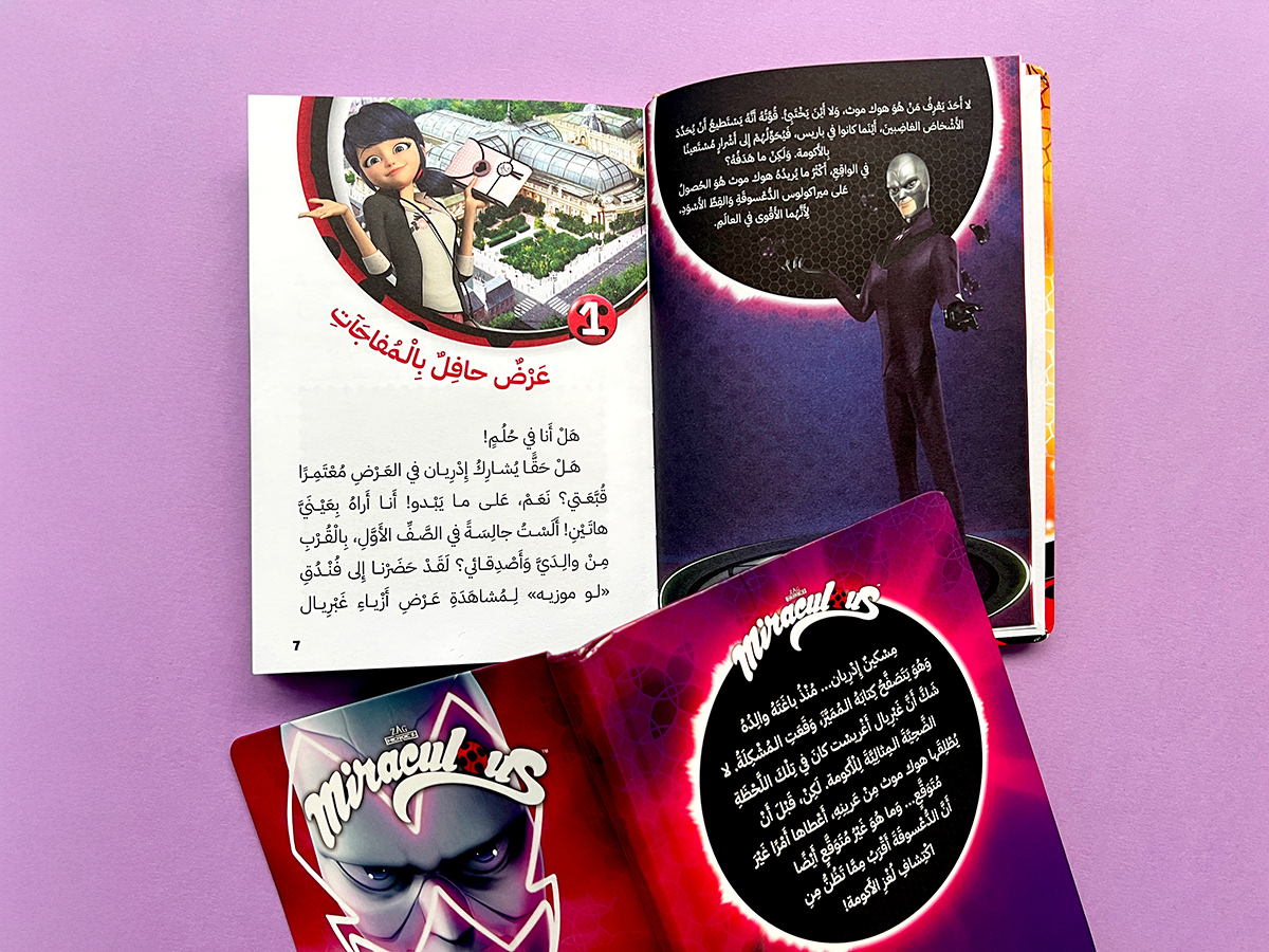 A complete visual creation based on the Miraculous universe for the Arabic market. This included character compositions, backgrounds, title lettering, and dynamic layouts that echo the show’s style. Deliverables: Cover artwork • Character compositions • Title lettering • Layout and typography • Print-ready production files