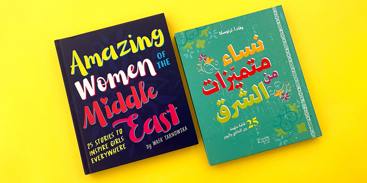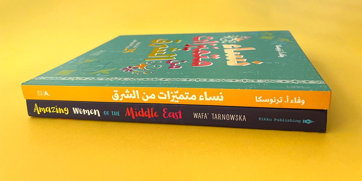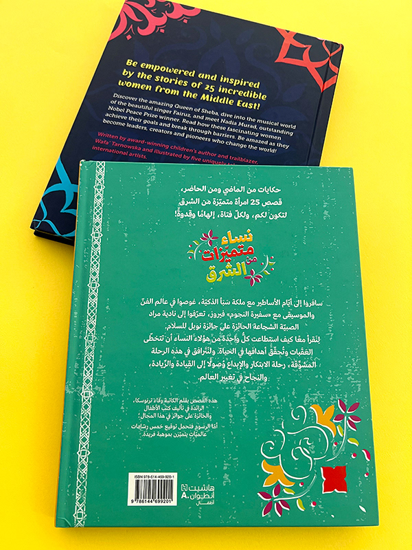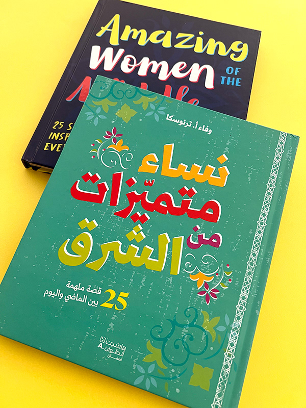 Arabic adaptation of Amazing Women of the Middle East by Wafa’ Tarnowska. The cover design reflects the celebratory and empowering tone of the original while integrating textures and colors drawn from the interior illustrations to ensure visual harmony. The result feels culturally grounded and expressive. Deliverables: Cover adaptation · Back cover layout · Color and composition adjustments